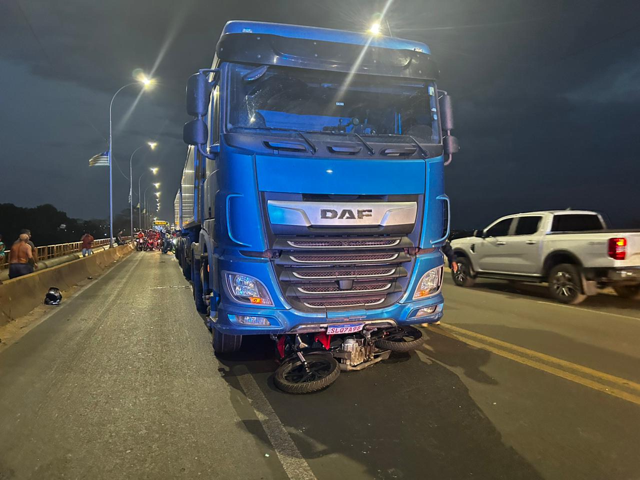 Acidente entre moto e carreta na ponte do Tancredo Neves deixa um morto