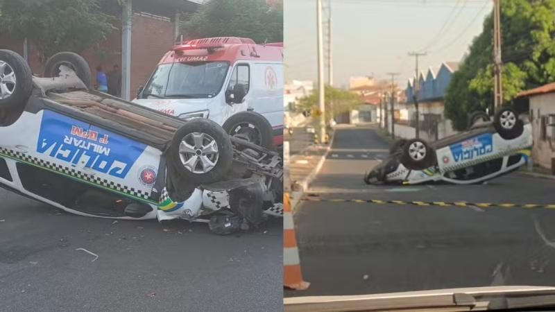 Policiais militares ficam feridos após viatura capotar em Teresina