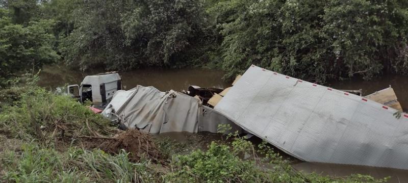 Carreta cai dentro de rio após se envolver em acidente no Piauí