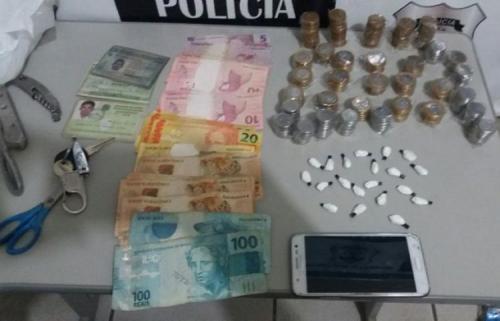 No local os policias encontraram vários papelotes de cocaína e dinheiro trocado.