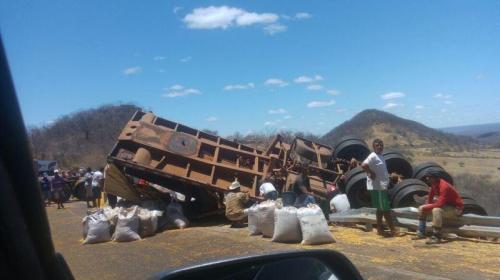 Carreta tomba na ladeira de Fátima do Piauí na BR 316 em Picos
