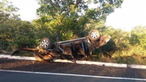 Motorista perde controle de Hilux e capota na BR-135; casal saiu ileso