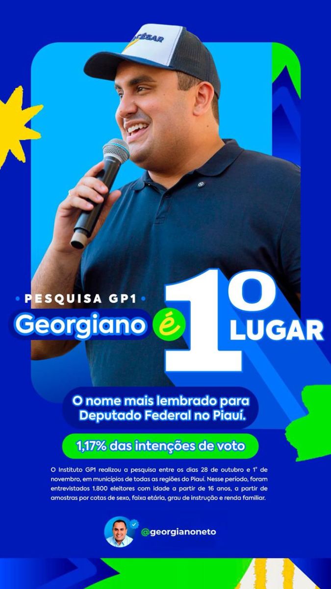 Deputado Georgiano Neto agradece confiança e reconhecimento da população em liderança para pesquisa eleitoral