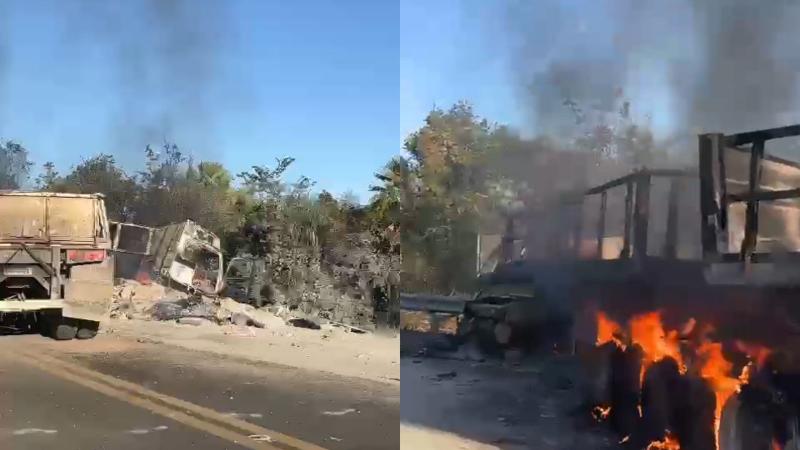 Carreta pega fogo e fica destruída após acidente na BR-343 do Piauí; veja vídeo
