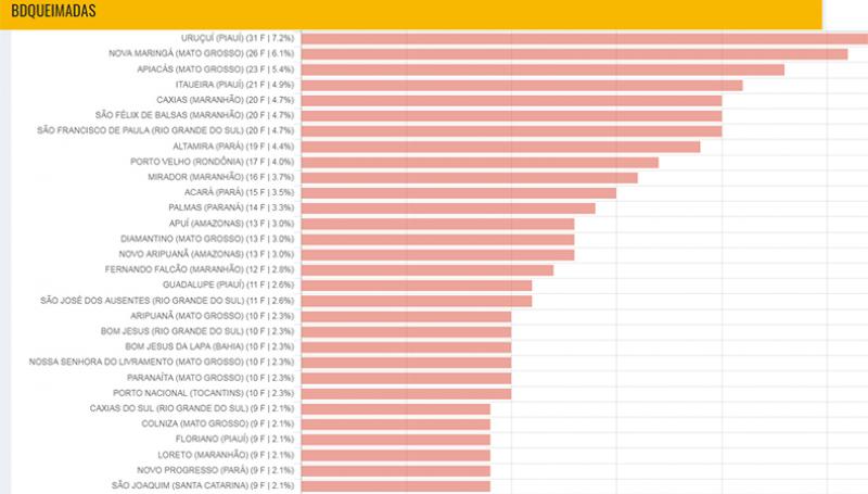 Uruçuí é a cidade com mais focos de queimadas do País nas últimas 24 horas