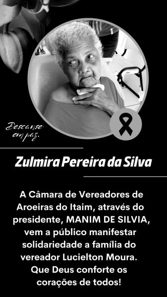 Câmara de Aroeiras do Itaim emite nota de pesar pelo falecimento de Zulmira Pereira da Silva