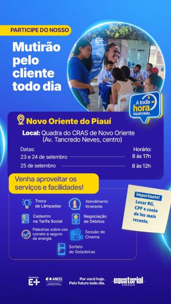 Moradores de Novo Oriente do Piauí recebem mutirão de serviços gratuitos da Equatorial e sorteio de geladeiras