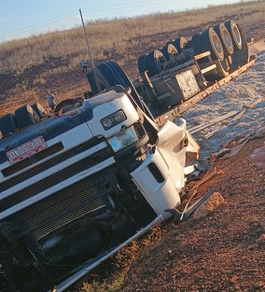 Motorista morre e passageira fica ferida após tombamento de carreta em Vera Mendes