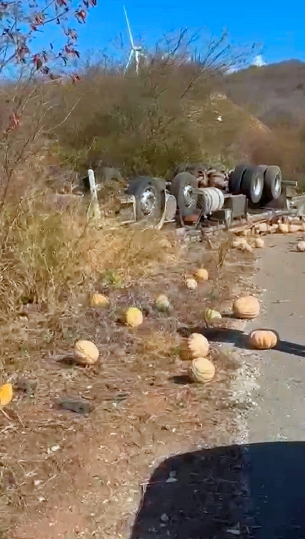 Caminhão carregado de abóbora capota na ladeira do S em Marcolândia