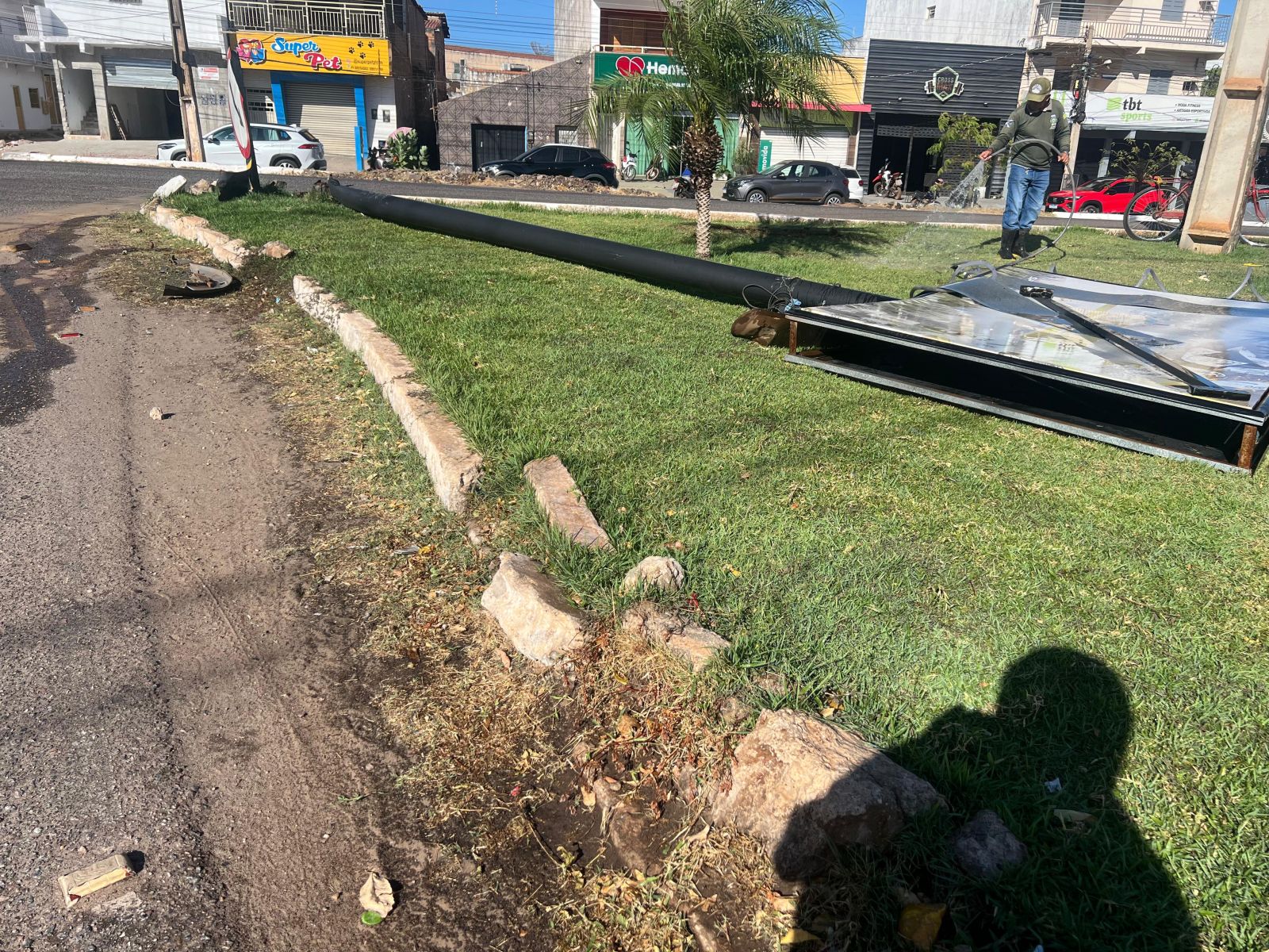 Carro desgovernado sobe em rotatória e causa estragos no bairro Junco em Picos