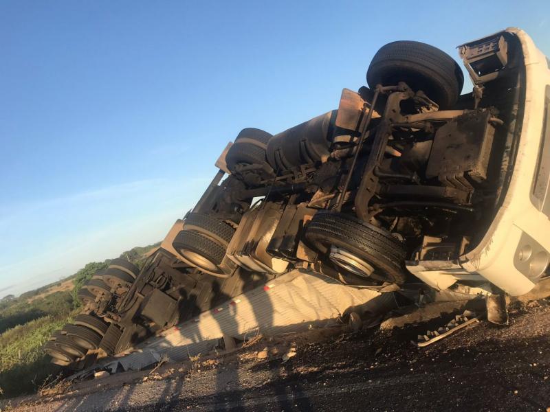 Caminhoneiro fica ferido em acidente em Monsenhor Hipólito
