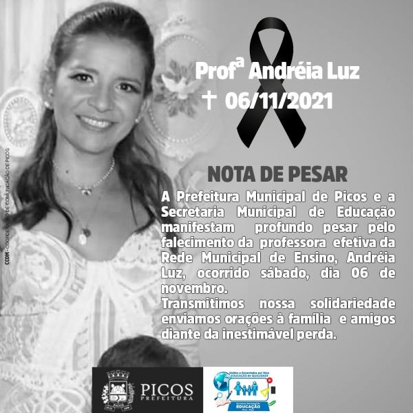 Prefeitura de Picos emite nota de pesar pelo falecimento da professora Andréia Luz