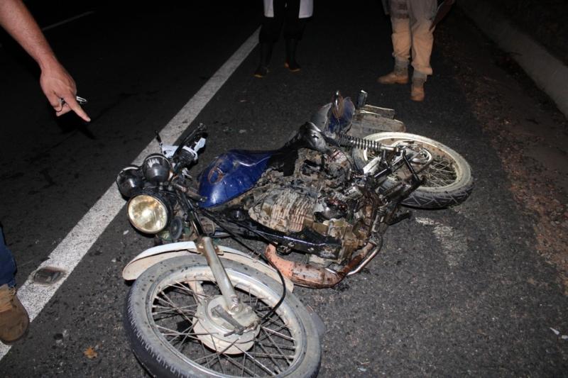 Segundo a PRF, o motociclista invadiu a pista contrária e colidiu frontalmente com o caminhão de carga que trafegava em sentido contrário