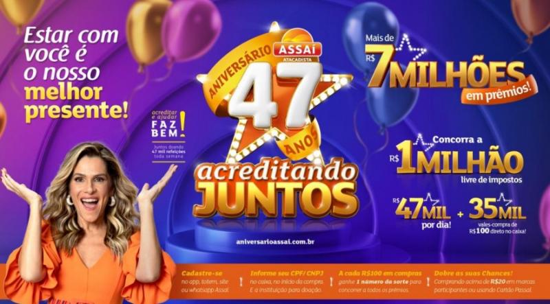 ASSAÍ sorteia mais de R$ 7 milhões em prémios e doa toneladas de alimentos em sua maior campanha de aniversário