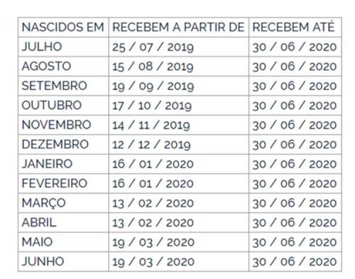 Os repasses serão feitos até 31 de março de 2020, conforme a data de nascimento dos beneficiários.