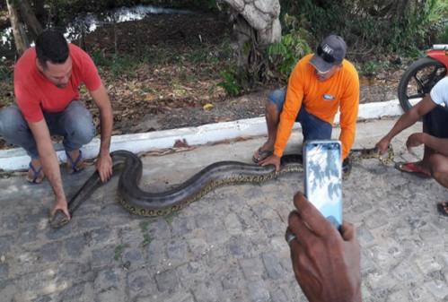 Sucuri de 60 kg é encontrada em açude de cidade no Piauí