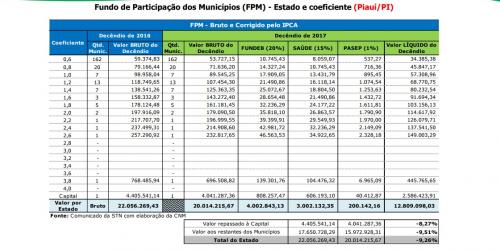A CNM contabiliza que o montante do FPM repassado ao longo de 2017 até o segundo decêndio de novembro totaliza R$ 80,419 bilhões.