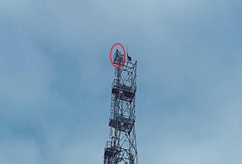 Homem sobe em torre de 80m e pede renúncia de Michel Temer