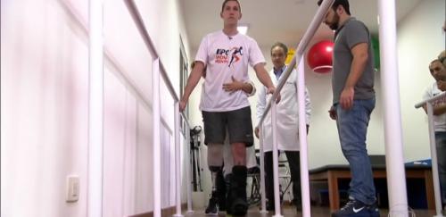 Follmann dá os primeiros passos com prótese: 'Estou igual a uma criança'