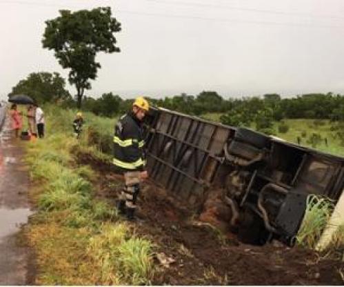 Ônibus que saiu do Piauí tomba em rodovia do GO; havia 50 ocupantes