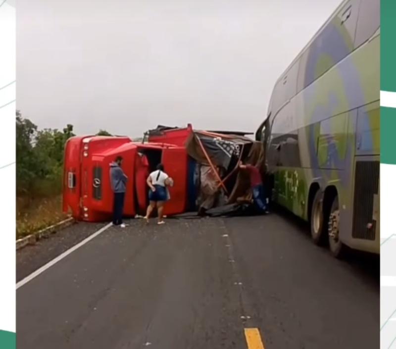 Motorista tenta desviar de jumento, tomba carreta e interdita parcialmente a PI-113
