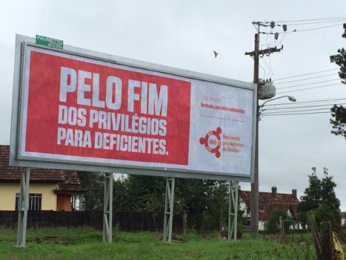 Outdoor em rua de Curitiba pede pelo fim de privilégios para deficientes