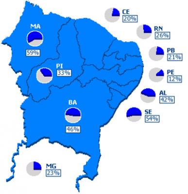 Enquanto Maranhão e Bahia chegam a 59% e 46% de capacidade, respectivamente, Piauí apresenta nível muito abaixo.