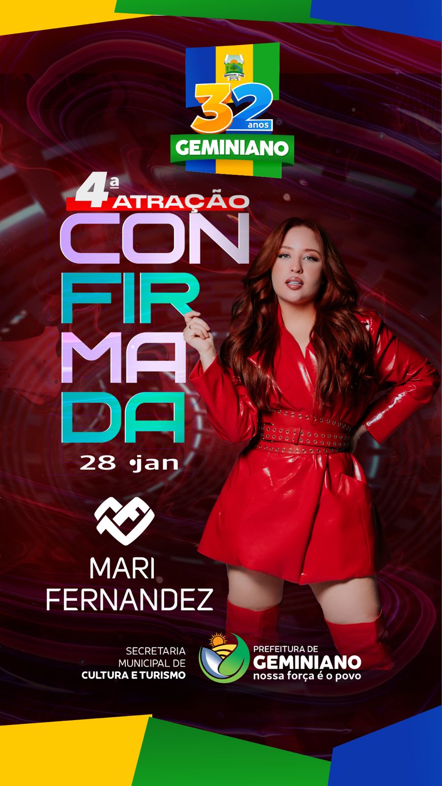 Prefeitura de Geminiano confirma Mari Fernandez como 4ª atração do aniversário de 32 anos do município