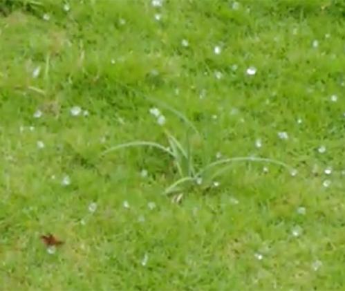 A chuva de granizo, que ocorreu nesta terça-feira (29), veio acompanhada de ventania e também deixou rastros de destruição.