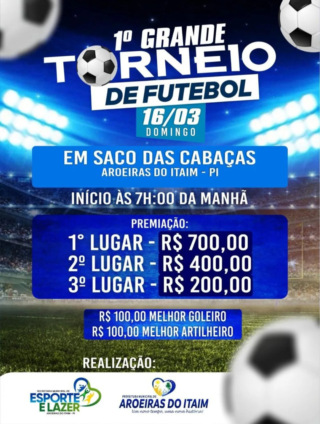 Prefeito Marciano Macedo vai realizar o 1º Grande Torneio de Futebol em Aroeiras do Itaim