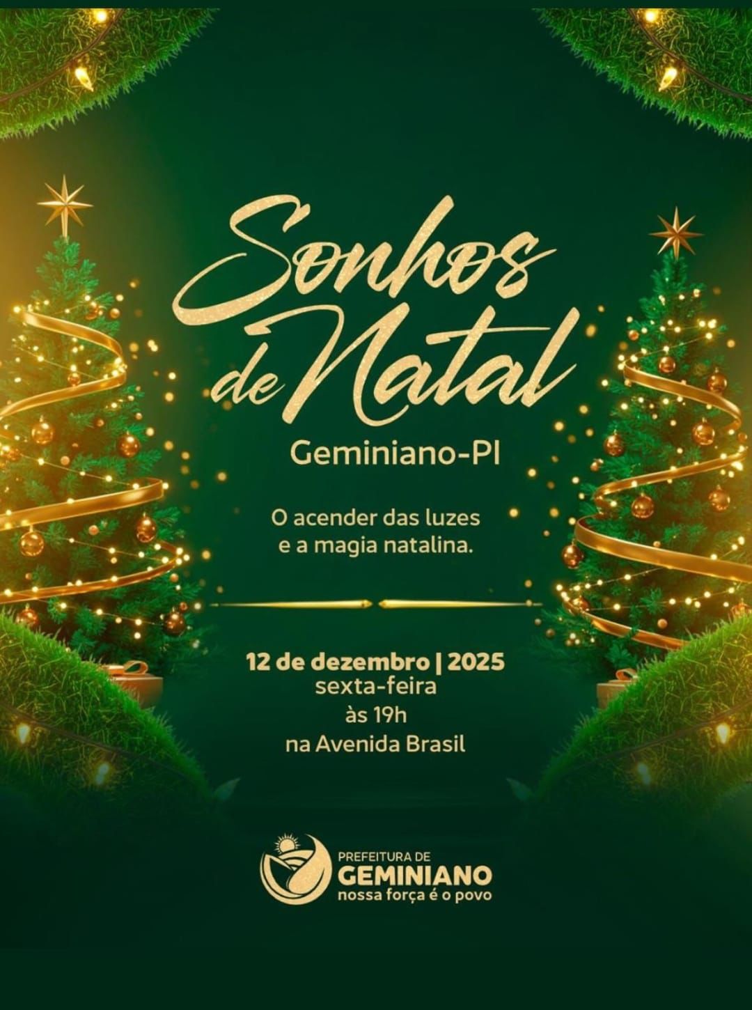 Prefeitura de Geminiano realizará o acender das luzes "Sonhos de Natal" nesta sexta-feira às 19 horas