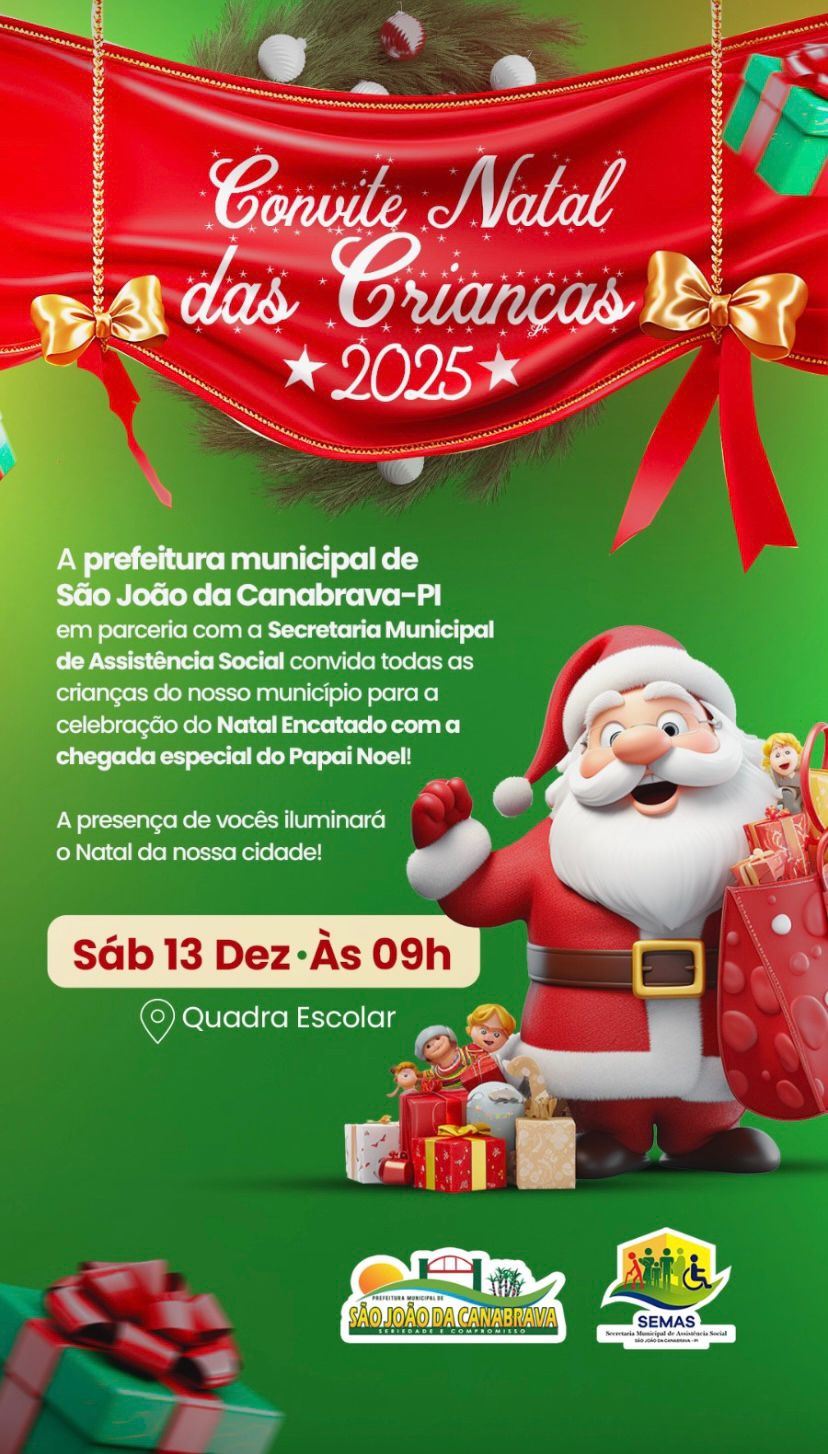 Prefeitura de São João da Canabrava realizará o “Natal das Crianças” no próximo sábado às 9 horas