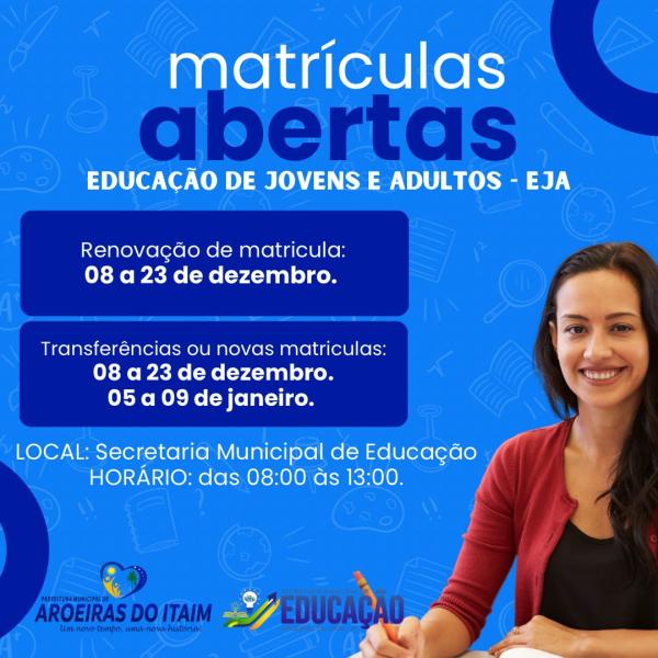 Aroeiras do Itaim anuncia início das matrículas da Rede Municipal de Ensino a partir de segunda-feira