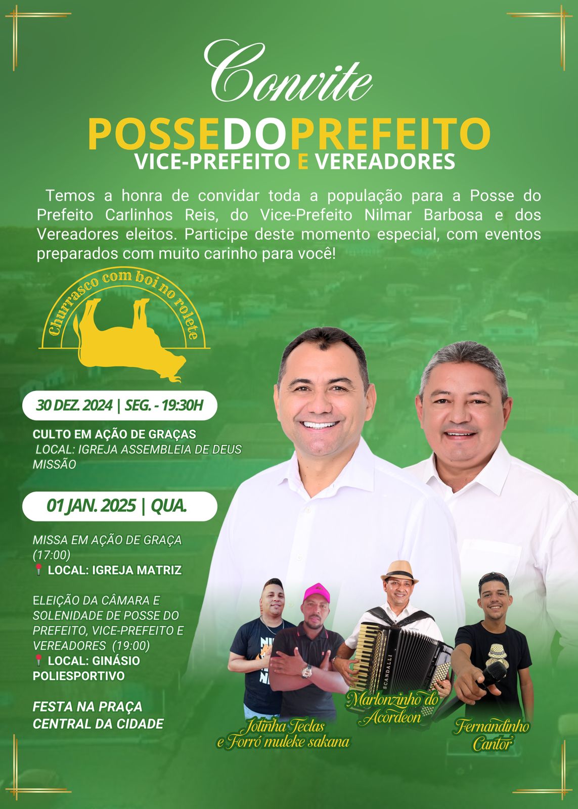 Carlinhos Reis assume Prefeitura de Pedro Laurentino em cerimônia no dia 1º de janeiro