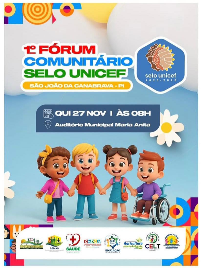Prefeitura de São João da Canabrava realizará nesta quinta (27) o 1° Fórum Comunitário do Selo Unicef