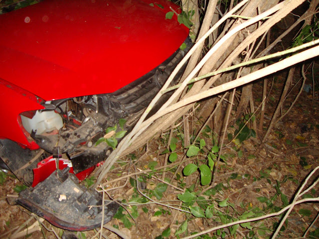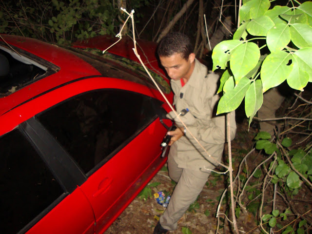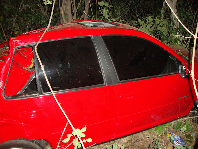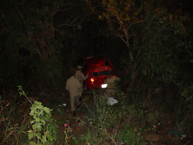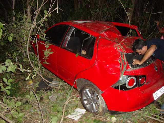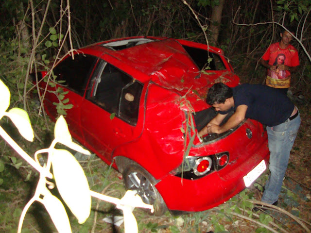 Segundo informações de populares, o veículo que era conduzido pela noiva do proprietário do veículo perdeu o controle do carro ao bater no jumento e desceu o aterro parando somente quando colidiu com as árvores.