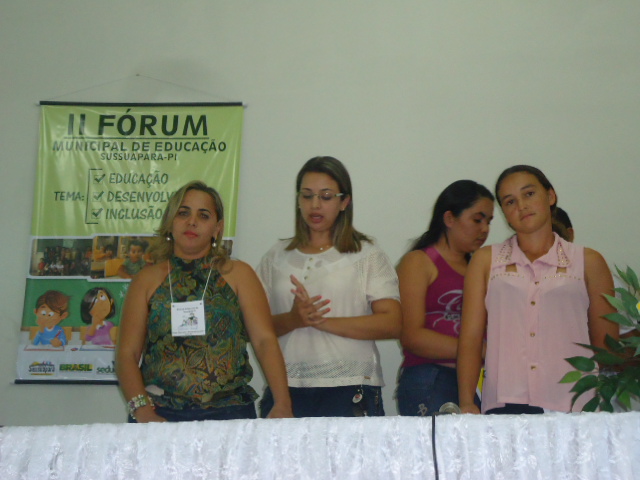 O Fórum de Educação foi aberto com a presença de várias autoridades, como a secretária de Educação de Sussuapara, Elisete Rocha, a gerente na 9ª Gerência Regional de Educação, Umbelina Pacheco e ainda os secretários municipais, Francisco das Chagas Moura (Governo), Neto Lira (Obras), Gislene Rocha (Finanças) e Osvaldo Vermelho (Agricultura) e ainda as coordenadoras de ensino, Jackeline Damasceno, Ana Regina, Eliana Leal, dentre outras.