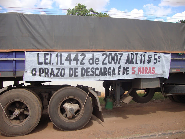 Os caminhoneiros alegam que a precariedade do local onde eles estão é muito grande e segundo a Lei 11.442 de 2007 Art. 11 § 5º o prazo de descarga é de 5 horas se não for efetuado a descarga a empresa contratante do serviço deverá pagar R$ 1,00 por hora que os proprietários dos caminhões ficarem parados e por isto eles estão em greve sendo que hoje existem 25 caminhões para efetuar a descarga no depósito da CONAB.