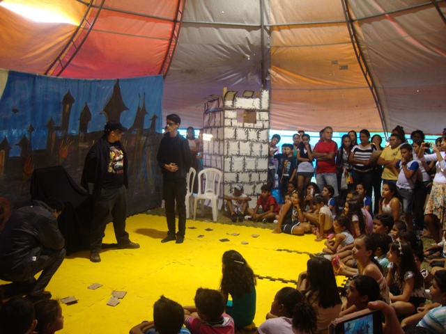 Ao chegar a Bienal, os alunos se direcionaram rapidamente ao circo das letras, onde estavam sendo realizadas várias apresentações teatrais com os mais variados temas inclusive sobre o meio ambiente.