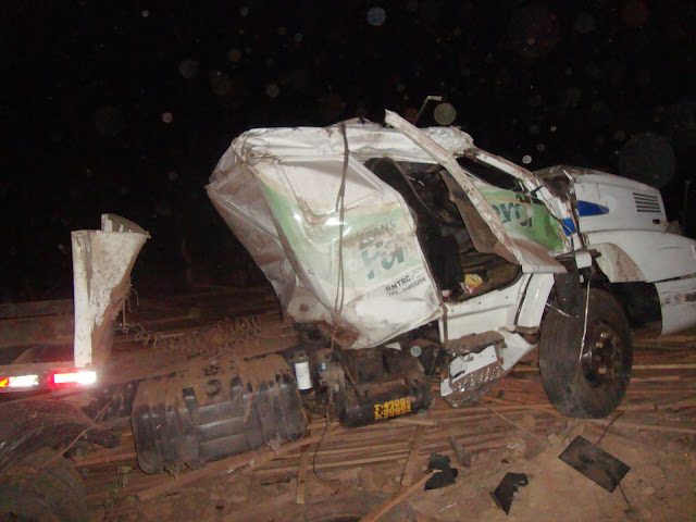 O motorista da carreta de cor Branca e placa MNU-7462 Marcolândia – PI virou quando desceu o aterro quebrando a barreira lateral e um poste que ficava próximo a pista na última curva da BR descendo em direção ao Bairro Belo Norte em Picos.