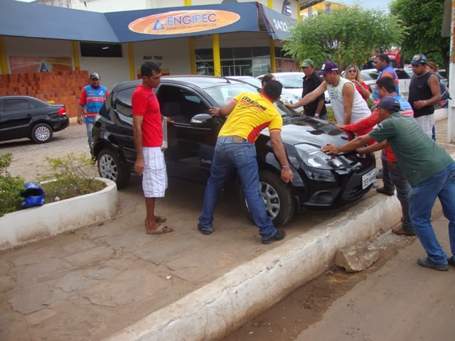 Populares que estavam passando na hora do acontecimento e mototaxistas que estavam presentes no local ajudaram a proprietária a puxar o carro e coloca-lo novamente no estacionamento.