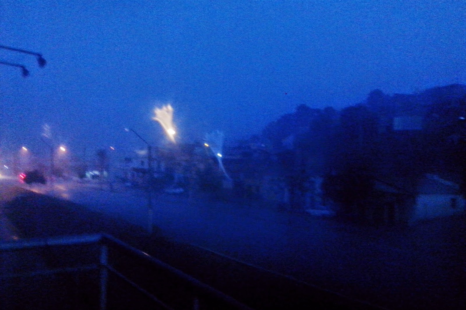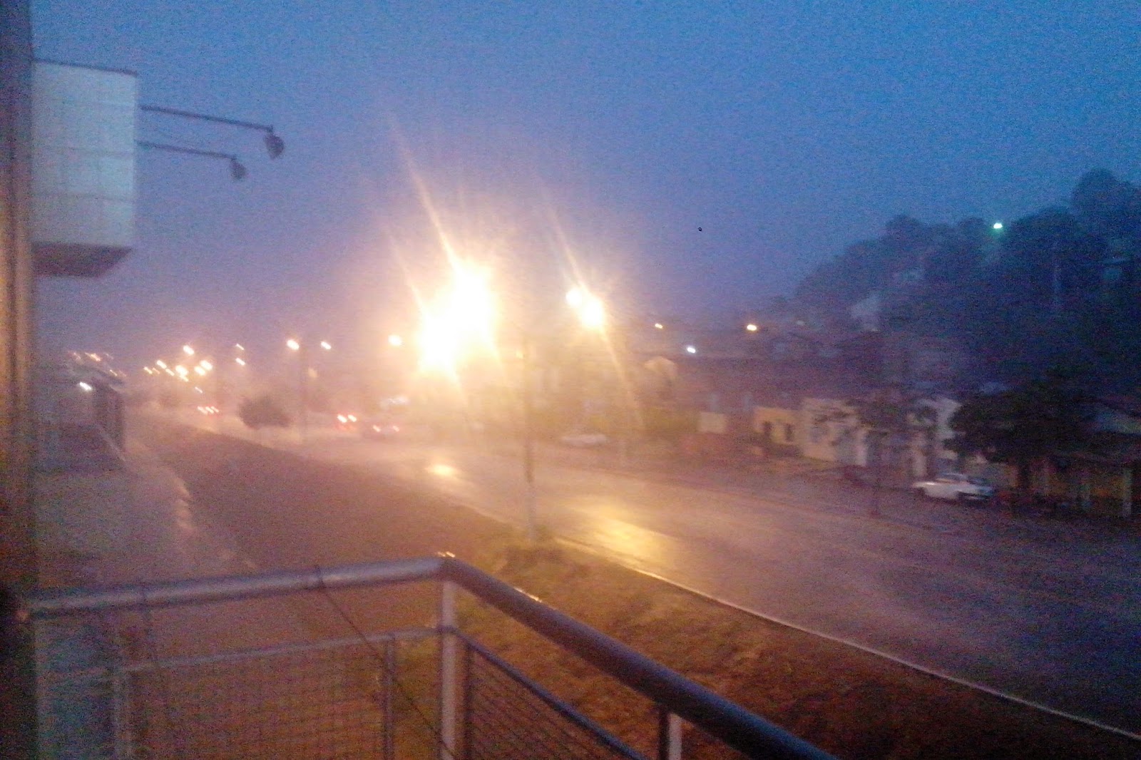 Antes do começar o temporal ventos muito fortes levantaram uma grande nuvem de poeira deixando toda cidade em uma tonalidade marrom.
