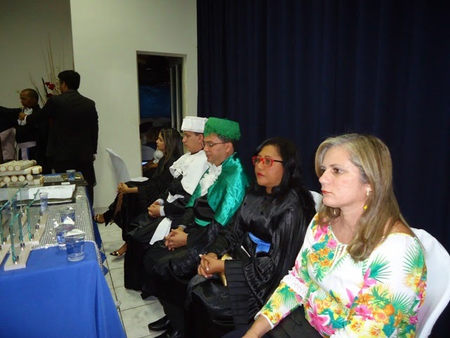 A solenidade de formatura começou 19: h30min e teve como presidente o professor Meireles que conferiu o grau a todos os formandos.