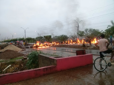 Hoje pela manhã populares interditaram a BR 316 no Bairro Junco próximo a região conhecida como “Cai n’água”, eles reclamaram pela falta de infraestrutura da cidade que quando chove muito as casas daquela local ficam alagadas em virtude do aterramento de uma antiga lagoa que ficava a margem esquerda da BR no sentido centro.