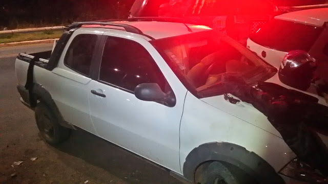 O veículo strada de cor branca foi recuperado na noite desta terça-feira e trata-se de fruto de um roubo na cidade de Santa Cruz do Piauí. Ele estava trafegando com três pessoas dentro próximo ao bairro Pedrinhas quando foi visto por uma viatura que estava em operação de saturação e que ao tentar aborda-la, esta empreendeu fuga e que ao chegar no bairro Conduru dois dos seus três ocupantes conseguiram fugir na mata.