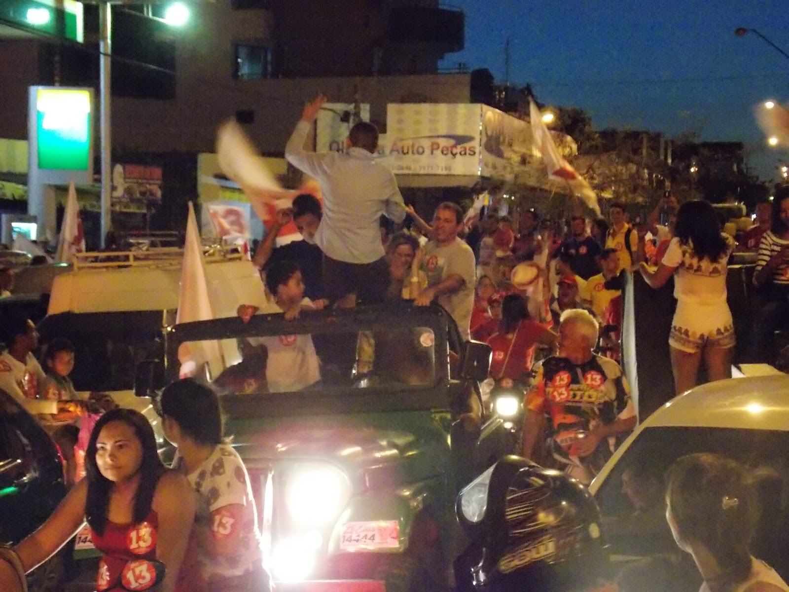 Partidários do Padre Walmir e Edilson Carvalho entoaram o grito da vitória numa euforia só percorrendo vários trechos da cidade.
