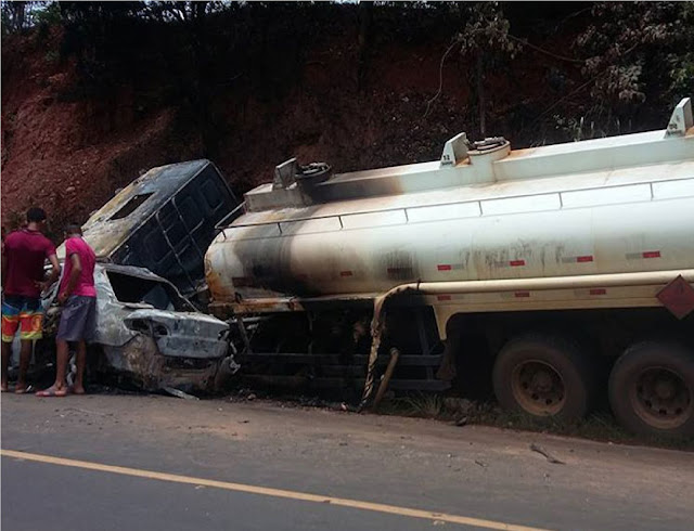 Quatro pessoas da mesma família, sendo duas crianças, morreram em acidente na BR-135, no município de Cristalândia (PI), próximo da divida com a Bahia. Um carro se chocou frontalmente com um caminhão tanque vazio, o que não impediu que os dois veículos pegassem fogo.