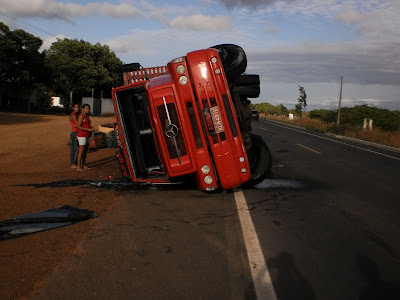 Segundo Bruno que não quis revelar se havia dirigido a noite toda, informou apenas que dormiu no volante e quando percebeu o caminhão virou na pista de rolamento causando apenas danos materiais, pois ele estava carregado apenas de caixas vazias que diminuiu o impacto.