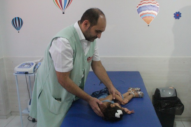 No local a criança é acompanhada por cinco profissionais diferentes, sendo eles neurologista, fonoaudiólogo, fisioterapeuta, terapeuta ocupacional e psicólogo.