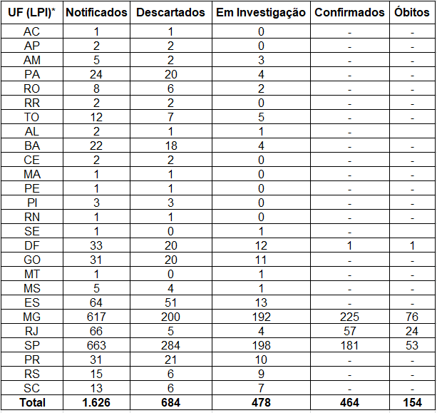 No ano passado, de julho de 2016 até 16 fevereiro de 2017, eram 532 casos confirmados e 166 óbitos confirmados. Os informes de febre amarela seguem, desde o ano passado, a sazonalidade da doença, que acontece, em sua maioria, no verão. Dessa forma, o período para a análise considera de 1º de julho a 30 de junho de cada ano.